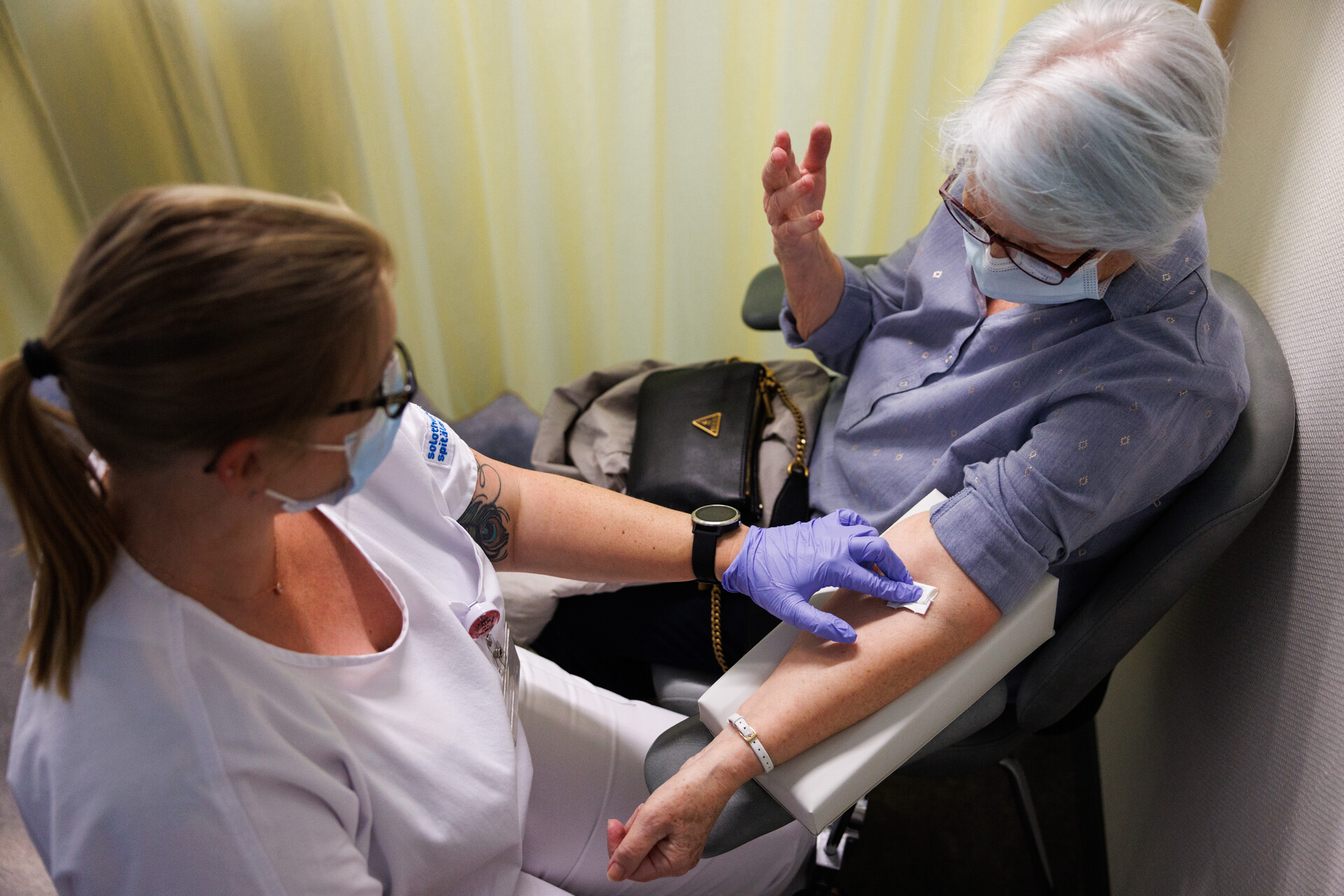 Wolf im Gespräch mit der Fachexpertin Onkologiepflege Rita Fringeli über